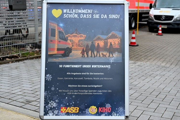 HANNOVER. Am letzten Mittwoch (19.11.) veranstaltete der Arbeiter-Samariter-Bund (ASB) Ortsverband Hannover-Stadt in seiner Rettungswache in der Petersstraße einen Charity Wintermarkt für den ASB Kinderhospizdienst (KIHO). Dabei konnten die BesucherInnen Glühwein, Punsch, Kakao, Pommes, Würstchen, Crepes und Pöpcorn genießen. Zusätzlich gab es für Kinder ein kleines Karussell, Tombola und Glücksrad und Lebkuchenherzen basteln. Auf dem Gelände der Rettungswache fanden sich viele Gäste ein, darunter auch: der Finanz-, Ordnungs- und Feuerwehrdezernent der Landeshauptstadt Axel von der Ohe, die stellvertretende Bezirksbürgermeisterin des Stadtbezirks Vahrenwald-List, Susanne Stucke (SPD) und Edeltraut-Inge Geschke (SPD), Mitglied im Bezirksrat des Stadrbezirks Hannover Nord vormals dort Bezirksbürgermeisterin. Für schwungvolle Livemusik im Brass Sound sorgte die Gruppe Brazzo Brazzone (L´unica italo-world-groove brass banda in tutto il mondo). Und es gab weitere Höhepunkte im Programm. Von einer großen Leinwand richtete die Präsidentin des Arbeiter-Samariter-Bundes, Katarina Barley, Grußworte an die WintermarktbesucherInnen. Ferner übernahm der neue Schirmherr des KIHO, der SPD-Bundestagsabgeordente Adis Ahmetovic, sein Amt. Obwohl es zwischenzeitlich begonnen hatte stark zu regnen, ließ man den Schirmherrn nicht im Regen stehen. Zur Amtseinführung erhielt er zwar keinen (Regen-)Schirm, dafür aber eine (augenscheinlich wetterfeste) Jacke mit KIHO-ASB-Aufschrift. Ein weiterer Höhepunkt: für den Kinderhospizdienst wurde ein Fahrzeug beschafft, das auf dem Wintermarkt vorgestellt wurde. Außerdem wurde dem ASB eine großzügige Spende gemacht: von der Feuerbestattungsgesllschaft Hannover und Niedersachsen mbH. Joachim Gerhardy von der Feuerbestattungsgesllschaft überreichte dem neuen KIHO-Schirmherrn Ahmetovic einen symbolischen Scheck über 44.444,44 Euro. Kann es für einen Schirmherrn einen schöneren Start ins neue Amt geben?