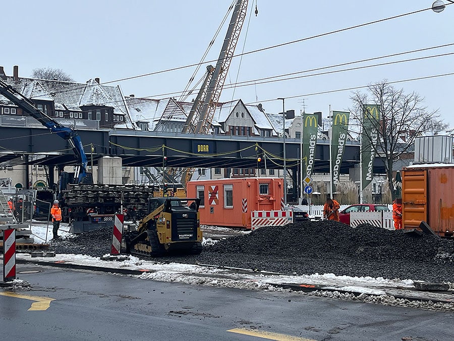 HANNOVER. Die Sanierung des Südschnellweges bring erneut auch Behinderungen für die Fahrgäste der Stadtbahn mit. Derzeit werden Schienen und Oberleitung der Stadtbahnlinien 1, 2 und 8 an der Kreuzung Hildesheimer Straße / Südschnellweg wieder in Mittellage gebracht. Die große Kurve entfällt zukünftig.