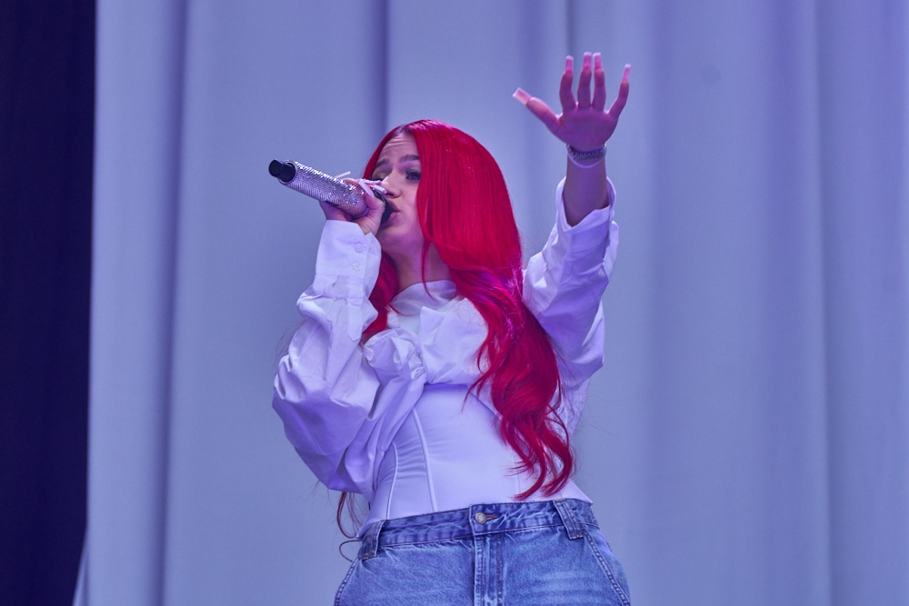 Ayliva (bürgerlich: Elif Akar) hat sich mit ihrer einzigartigen Mischung aus melancholischem R’n’B, Pop und orientalischen Einflüssen einen festen Platz in der deutschen Musiklandschaft erobert. Ihr Debütalbum „Weißes Haus“ (2021) war ein Überraschungserfolg, ihr Nachfolger „Schwarzes Herz“ bestätigte ihre Ausnahmestellung. Bei der Starshow brachte sie mit ihrer gefühlvollen Stimme eine spürbare Ruhe in die aufgeheizte Stimmung. Songs wie „Deine Schuld“, „Beifahrer“ oder „Hässlich“ wurden von den jüngsten Fans beeindruckend mitgesungen. Die untergehende Sonne über der Expo-Plaza machte diesen Teil des Abends zu einem besonders magischen Gänsehautmoment.