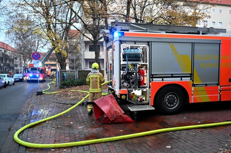 HANNOVER. Am gestrigen Donnerstagnachmittag (04.12.) gegen 15:25 Uhr erreichten die Regionsleitstelle Hannover mehrere Notrufe. Es wurden eine starke Rauchentwicklung, sowie piepende Rauchwarnmelder aus einer Wohnung im vierten Obergeschoss eines Mehrparteienhauses in der Straße „Knoevenagelweg“ in Hannover-Hainholz gemeldet. Die Regionsleitstelle löste daraufhin Großalarm für zwei Löschzüge der Berufsfeuerwehr, die Freiwillige Feuerwehr Vinnhorst, sowie den Rettungsdienst Hannover aus. Bereits auf der Anfahrt erhielten die Brandschützer Informationen, dass sich das Feuer auf die gesamte Wohnung ausbreitet und die Rauchentwicklung deutlich zugenommen habe. Die Erstmaßnahmen der Feuerwehr vor Ort konzentrierten sich vorrangig darauf, eine Menschensuche in der inzwischen in Vollbrand stehenden Wohnung einzuleiten. Hierfür gingen mehrere Trupps unter Atemschutzgeräten mit Wärmebildkameras in die Brandwohnung vor und suchten diese systematisch ab. Bei der gleichzeitig durchgeführten Brandbekämpfung entdeckten die Einsatzkräfte innerhalb kürzester Zeit eine schwerverletzte Person, die sofort aus der Wohnung gerettet und an den Rettungsdienst Hannover zur weiteren Behandlung übergeben wurde. Die verletzte Person wurde mit einem Rettungswagen in Begleitung eines Notarztes, in eine hannoversche Klinik transportiert. Der Brand wurde während dessen von weiteren Einsatzkräften im Innenangriff, sowie unterstützt von außen durch zwei Drehleitern erfolgreich bekämpft. Die vollständig ausgebrannte betroffene Wohnung, sowie der Treppenraum wurden mit Hochleistungsbelüftungsgeräten der Feuerwehr entraucht. Aufgrund des schnellen und massiven Eingreifens der Feuerwehr konnte eine Ausbreitung des Brandes auf angrenzende Wohnungen und Gebäudeteile verhindert werden. Die Höhe des entstandenen Sachschadens beläuft sich auf etwa 150.000 Euro. Zur Ursache des Brandes konnte die Feuerwehr zum aktuellen Zeitpunkt keine Aussage machen. Die Einsatzstelle wurde zur Aufnahme von kriminaltechnischen Ermittlungsarbeiten zur Klärung der Brandursache an die Polizei Hannover übergeben, die mit Kräften des Kriminaldauerdienstes umgehend tätig wurde. Für die Feuerwehr waren die Einsatzmaßnahmen vor Ort nach etwa einer Stunde weitestgehend abgeschlossen. Die Feuerwehr und der Rettungsdienst waren mit insgesamt 45 Einsatzkräften und 14 Fahrzeugen vor Ort.