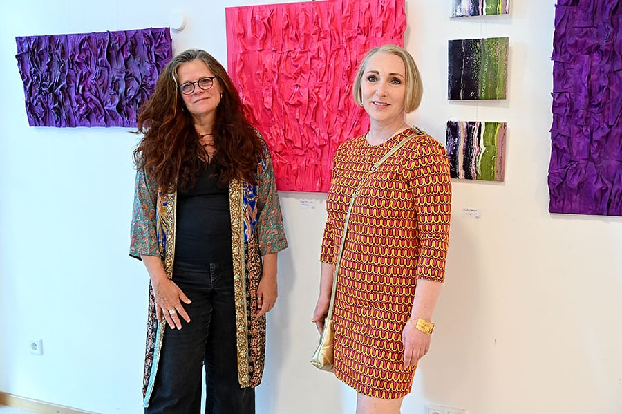 „Alles kommt in Wellen“ war das übergreifende Motto für die Arbeiten. Bei der Vernissage Mitte Mai führte die promovierte Historikerin, die sich selbst als „spirituelle Künstlerin“ definiert, nach einleitenden Worten von Tatjana Hattig, der Leiterin des Quartierstreff, in ihre Bilderwelten ein und machte dabei auch Anleihen bei der Quantenphysik. Auch dort dreht sich alles um Wellen und Teilchen. Bevor dann mit einem Gläschen Sekt oder Saft auf die Ausstellung angestoßen wurde, gab ihre Tochter Lucie noch ein kleines Solo-Konzert auf der Querflöte.