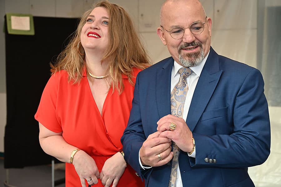 Bis sich der Premierenvorhang hebt, wird kräftig an den Szenen gefeilt. In einem Raum des Freizeitheimes haben die Theaterleute ein provisorisches Bühnenbild aufgebaut. Regisseurin Gabriele Dragon ist an einigen Stellen noch unzufrieden. Korrigierend greift sie in die Handlung ein, macht selbst vor, wie sich die Schauspieler bewegen sollen. Denn im Frühjahr nächsten Jahres soll wieder dem Publikum ein rundum gelungenes Stück präsentiert werden. Schließlich hat das Südstädter Komöd‘chen in seinen nahezu 29 Jahren lokale Bühnengeschichte geschrieben und immer wieder mit rasanten Komödien die Zuschauer begeistert. Diese Erfolgsstory soll 2026 fortgesetzt werden.