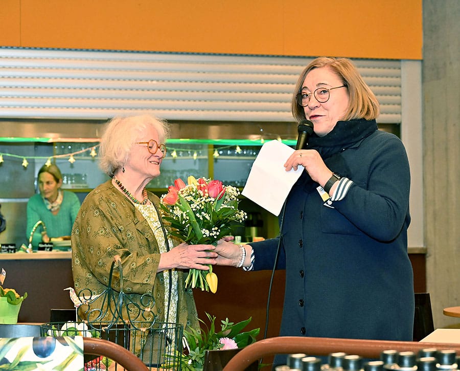 Hinter den Kulissen war viel Arbeit zu verrichten, damit der Kunsthandwerkermarkt wieder eine gelungene, runde Sache wurde. Maria Hesse bedankte sich mit Blumensträußen insbesondere bei Ursula Klein und Anne Güler, die ehrenamtlich das Ereignis organisiert haben. Einen dritten Strauß bekam auch KuI-Mitarbeiter Christian Recha. Hesse: „Ohne dieses freiwillige Engagement gäbe es diesen Markt nicht – und dafür gebührt Ihnen unser großer Dank.“