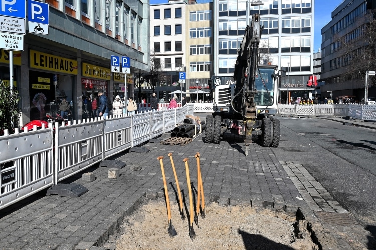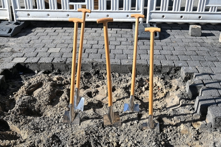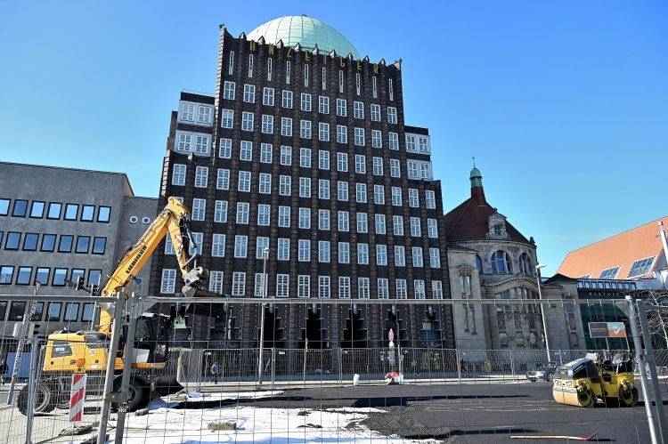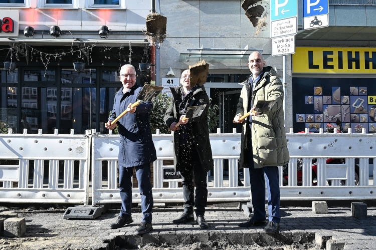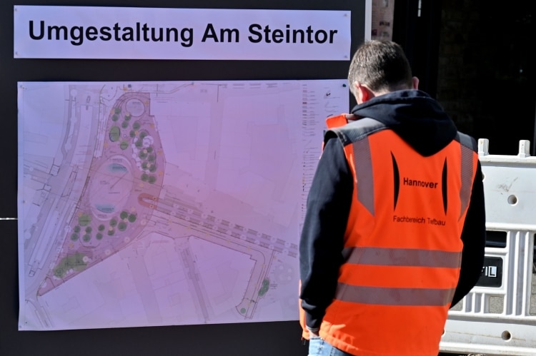 HANNOVER. „Jetzt geht`s los” freute sich Oberbürgermeister Belit Onay am Mittwoch (25.02.) anläßlich des symbolischen Spatenstichs für den Beginn des Umbaus des Steintorplatzes. Wegen der frostigen Temperaturen in den vergangenen Wochen erfolgte nun endlich der Start für die Neugestaltung des Steintorplatzes und des angrenzenden Gebietes. Dazu gehört auch der Einmündungsbereich der Schmiedestraße in die Georgstraße. Hier fand auch der Spatenstich statt (und nicht etwa auf dem Steintorplatz selbst). Oberbürgermeister Belit Onay und Stadtbaurat Thomas Vielhaber hielten kurze Ansprachen und skizzierten die Planungen zur Neugestaltung des Steintorplatzes. Neben dem Oberbürgermeister und Stadtbaurat waren auch Vertreter des ausführenden Planungsbüros Grieger / Harzer / Dvorak aus Berlin und des Tiefbauamtes der Stadt vor Ort. Und auch eine Reihe von Rats- und Bezirksratsmitgliedern waren zu diesem Termin erschienen.